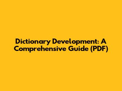 Dictionary Development: A Comprehensive Guide (PDF)
