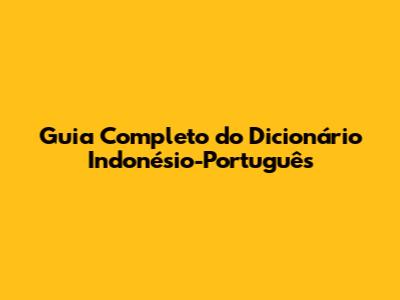 Guia Completo Do Dicionário Indonésio-Português