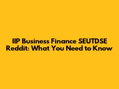 IIP Business Finance SEUTDSE Reddit: What You Need To Know