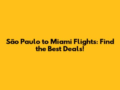São Paulo To Miami Flights: Find The Best Deals!