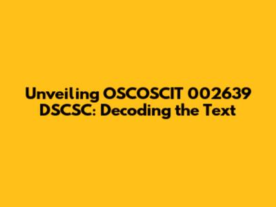 Unveiling OSCOSCIT 002639 DSCSC: Decoding The Text